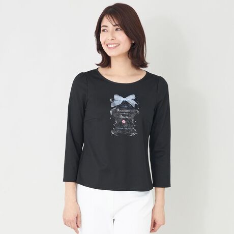 TO BE CHIC定番のオリジナルモチーフTシャツ。モチーフには、リボンフレームを用いてシーズンテーマ「ルネサンス ― 美への憧憬 ―」を表現しました。一枚着はもちろん、ジャケットやカーディガンのインナーとしても映えるデザインです。