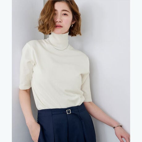 ◆DETAILハイネックで身体のラインを綺麗に見せてくれるフィットニット。ハーフスリーブなので体温調節もしやすい1枚です。さらっとしたニット素材なので着心地も抜群です。1枚で着用はもちろん、ジャケットのインナーとしても重宝する着回し力抜群のアイテムに仕上げました。[型番:BFXU1766]
