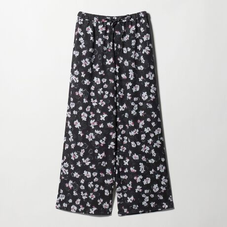 装いに華やかさを添えるフラワープリントのワイドパンツ。