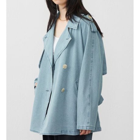 SOMETHINGのST116デニムトレンチが持つ、ガンフラップや肩章といった正統派で本格的なディテールはそのままに、総丈70cmのハーフ丈で仕上げました。トレンチコートのクラシックな要素はそのままに、短すぎない絶妙な丈感が、きれいめなスタイルからカジュアルな装いまで、幅広いシーンにマッチします。付属のベルトでウエストマークをすれば、キュッと引き締まった印象になり、スタイルアップ効果も期待できます。