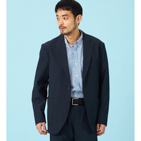 細かな凹凸があるシアサッカー生地で、肌に張りつきにくくサラッと快適。ストライプ感を控えめにしているため、きれいめにもカジュアルにも振れるのが魅力です。軽量で動きやすい2WAYストレッチ仕様。