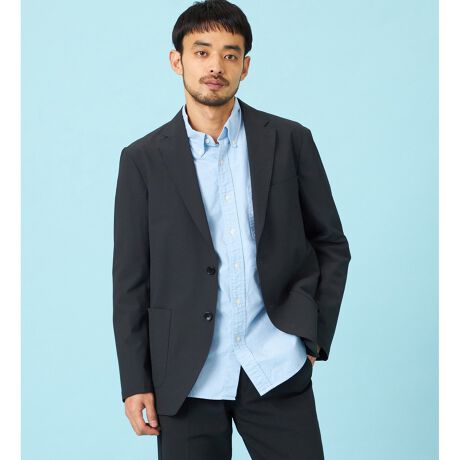 細かな凹凸があるシアサッカー生地で、肌に張りつきにくくサラッと快適。ストライプ感を控えめにしているため、きれいめにもカジュアルにも振れるのが魅力です。軽量で動きやすい2WAYストレッチ仕様。
