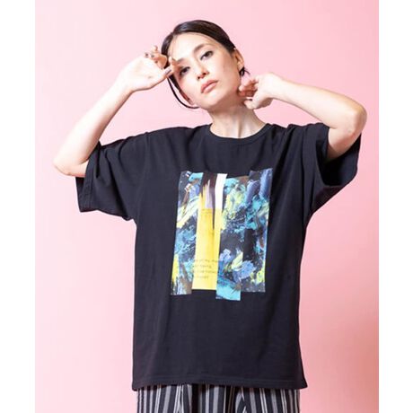 [型番:501006-473T]ウェアラブルなオーバーサイズTシャツに、アートプリントで大人な表情をプラス。羽織アイテムとも相性が良く、スタイリングの程よいアクセントに。===========================透け感: 僅かにあり(WHITE)伸縮性: あり光沢感: なし裏地: なし素材について: 伸びが良く、柔らかなTシャツ生地===========================