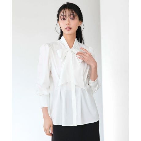 大きなリボンが目を惹く、華やかで上品なフェミニンブラウス
