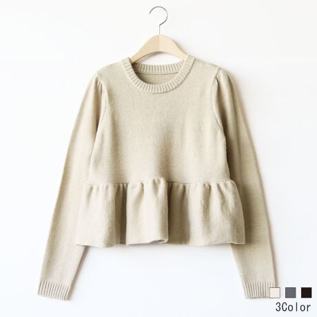 ギャザーフリルが可愛らしい印象のニットプルオーバー。