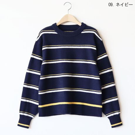 さりげない配色がお洒落に映えるニットプルオーバー。