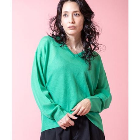 [型番:501010-477K]着回し力抜群なシンプルなVネックニットは、さりげないシアー感で女性らしく。ベーシックからプレイフルなカラーまで揃い、幅広いコーディネートにマッチ。===========================透け感: あり伸縮性: あり光沢感: なし裏地: なし素材について: シャリっとした風合いでドライな肌触り、透けのある編地===========================