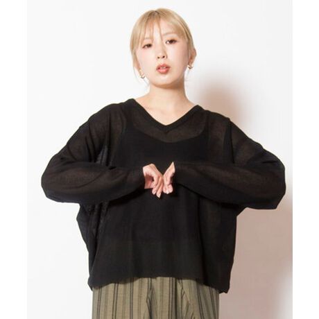 [型番:501010-477K]着回し力抜群なシンプルなVネックニットは、さりげないシアー感で女性らしく。ベーシックからプレイフルなカラーまで揃い、幅広いコーディネートにマッチ。===========================透け感: あり伸縮性: あり光沢感: なし裏地: なし素材について: シャリっとした風合いでドライな肌触り、透けのある編地===========================