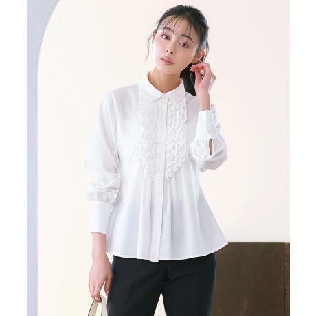 きちんと感をプラスしてくれるシャツカラーとセットインスリーブのブラウス。