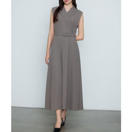 大人のきちんと感を演出する2wayテーラードカラーフレアワンピース。