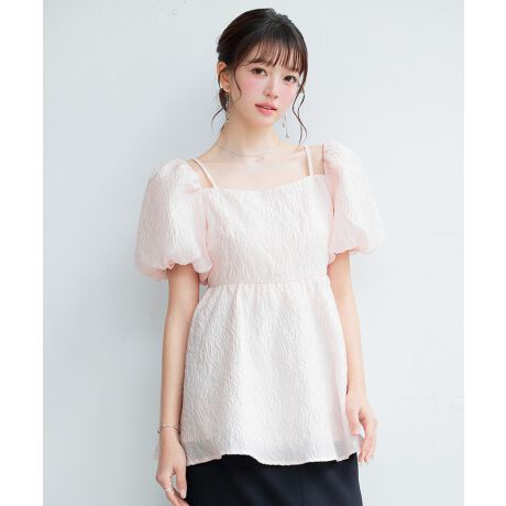 ボリュームたっぷりのパフスリーブは、2wayでオフショルダーとしても着回せます。フェミニンな雰囲気にプラスして女性らしさも演出できる一枚です。