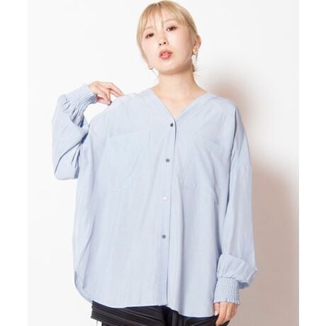 [型番:501006-482B]スッキリしたVネックに、袖口のギャザーやドロストヘムで甘さもプラス。ラフさの中にメリハリを効かせ、羽織としても頼れる一枚。===========================透け感: ややあり(WHITE)伸縮性: なし光沢感: なし裏地: なし素材について: 落ち感のある、柔らかいブラウス地===========================