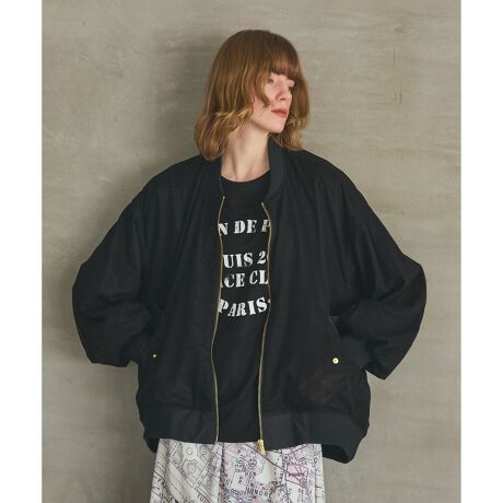 [型番:0226153034]メッシュとシアー布地を2重にしモード感のあるコクーンシルエットに仕立てた、MA-1ディテールでやや着丈長めのブルゾン。※こちらのモデル着用画像はサンプル品を撮影しております。実際の商品と仕様、加工、サイズが若干異なる場合がございます。予めご了承くださいませ。