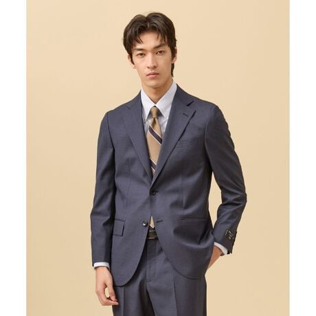 ■仕様生地にはナチュラルストレッチ加工を施し、身体の動きに自然にフィット。毛芯や肩パッドを使用しない軽量な仕立てにより、スーツでありながら軽やかで動きやすく、長時間の着用でもストレスを感じにくい着心地を実現しています。