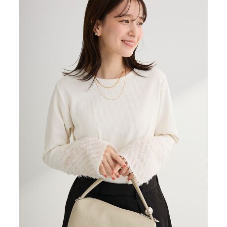 袖の表情で差がつく、上品さと華やかさのバランスベーシックなシルエットに異素材を組み合わせ、さりげないアクセントを効かせた一枚です。柔らかなフェザー素材の袖が、装いに奥行きと立体感を与えてくれます。派手になりすぎないため、普段のコーディネートに自然に取り入れやすいのがポイントです。アクセサリーを控えめにしても、ほどよい存在感で印象を引き上げてくれます。季節の変わり目にも着やすく、インナーとしても一枚着としても活躍します。着回し力が高く、上品カジュアルを楽しみたい方におすすめです。※モデル着用画像は、光の当たり具合で色味が違って見える場合がございます。※お使いのモニター環境によって商品の色味が違って見える場合がございます。