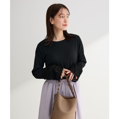 袖の表情で差がつく、上品さと華やかさのバランスベーシックなシルエットに異素材を組み合わせ、さりげないアクセントを効かせた一枚です。柔らかなフェザー素材の袖が、装いに奥行きと立体感を与えてくれます。派手になりすぎないため、普段のコーディネートに自然に取り入れやすいのがポイントです。アクセサリーを控えめにしても、ほどよい存在感で印象を引き上げてくれます。季節の変わり目にも着やすく、インナーとしても一枚着としても活躍します。着回し力が高く、上品カジュアルを楽しみたい方におすすめです。※モデル着用画像は、光の当たり具合で色味が違って見える場合がございます。※お使いのモニター環境によって商品の色味が違って見える場合がございます。