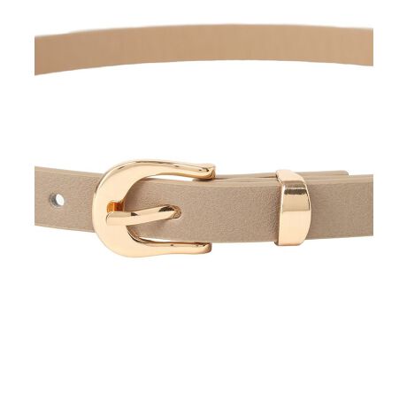 毎日にすっとなじむ、上品で頼れる一本装いを選ばず活躍する、すっきりとしたデザインのベルトです。無駄を省いたベーシックな表情が、デニムやスラックス、スカートまで幅広いコーデに自然となじみます。程よい細さで主張しすぎず、ウエストラインをきれいに見せてくれるのも嬉しいポイントです。ゴールド調のバックルがさりげない上品さを添え、カジュアルスタイルを大人らしく引き締めます。シンプルだからこそ季節を問わず使いやすく、オンオフ兼用で活躍します。一本持っているだけで着こなしの幅が広がり、毎日のコーディネートに迷いにくくなります。定番アイテムとして長く愛用しやすく、初めてのベルト選びにもおすすめです。※モデル着用画像は、光の当たり具合で色味が違って見える場合がございます。※お使いのモニター環境によって商品の色味が違って見える場合がございます。