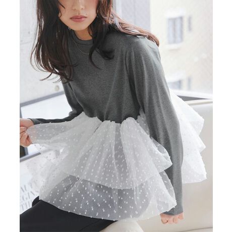 チュールフリルドッキングTシャツ [C7711]