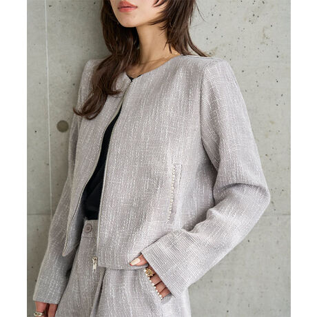 マルイウェブチャネル   /   神戸レタス   /   アウター・ジャケット・コート   /   ノーカラージャケット   /   パールトリムツイードジャケット [K1424]