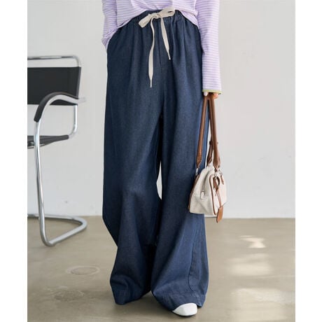 ウエストはゴム仕様で身体に合わせてフィットし、ウエストリボンがスタイリングにアクセントをプラス。