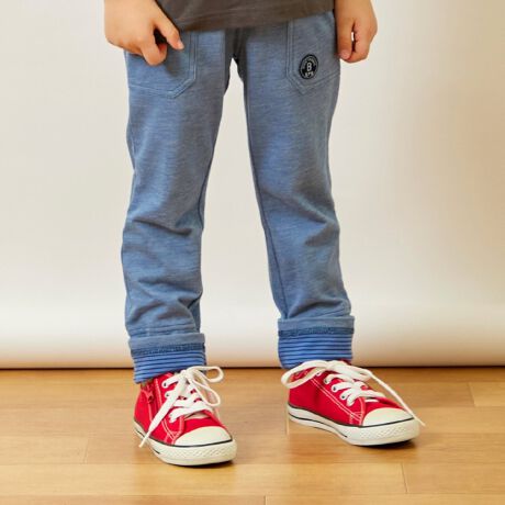伸びの良い生地で動きやすく、ウエストは総ゴム仕様で穿きやすい仕上がり。