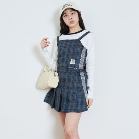チェック柄にサイドラインを入れて、甘すぎないストリートテイストをプラス。