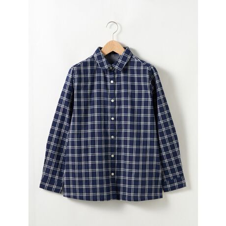 [型番:6251211][型番:6251211]ダブルガーゼ生地を使用したブラウス。インディゴ風のギンガムチェック、中柄チェックを用意しました。空気を含むダブルガーゼならではの柔らかさがあり、気温差のある春に快適に過ごせる素材感です。洗いざらしでも雰囲気が出るので大人のリラックス感を演出してくれます。脇スリットにはいった赤のカン止めがアクセントです。