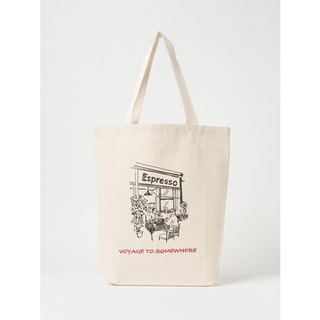 [型番:6251902][型番:6251902]手書きのグラフィックを施したトートバック。今季のテーマ"VOYAGE TO SOMEWHERE (ITALY)"イタリアを旅しながらミラノの街角でエスプレッソを飲みながら一休み、といった景色をイメージしています。味わいのある手書きのプリントに刺繍でアクセントを付けました。A4サイズの書類が入る使いやすい大きさ、内ポケット付きも嬉しいポイントです。