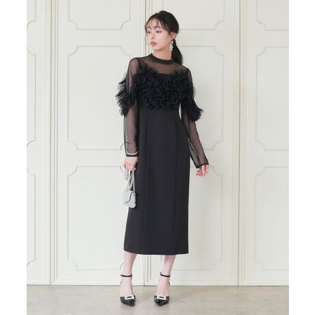 ボリュームたっぷりのチュールフリルが視線を惹きつける、存在感ある1枚