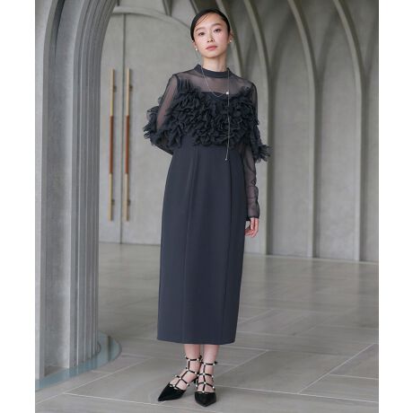 ボリュームたっぷりのチュールフリルが視線を惹きつける、存在感ある1枚