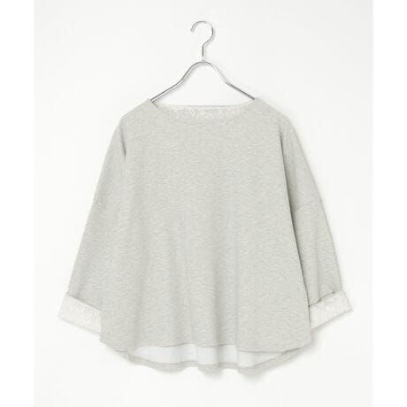 [型番:26921088]無地ベースのカットソーに、袖口と背裏へレースを切り替えたプルオーバー。ポイント使いのレースが、シンプルな中にさりげない表情を加えます。【素材】綾目が効いたカジュアルカットソー。【デザイン】ドロップショルダー、シンプルデザイン。【ポイント】袖口と背裏をレース使いした着映える一枚着カットソーです。袖を折り返すとレース見せのデザインで着られます。今年はすっきり着られるベーシックカラー無地の展開。