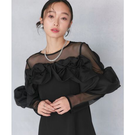 バスト上・袖:程よい透け感のある柔らかなチュール素材。