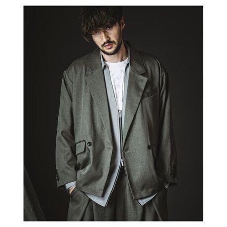 オーバーショルダーのBIGシルエットにセットインスリーブを組み合わせることで、ルーズでありながらも輪郭のあるシルエットを構築。