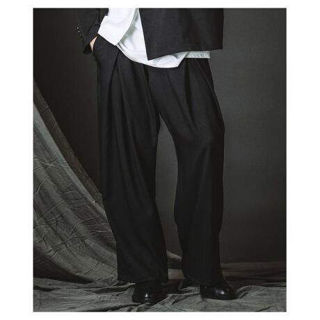 交差する2本のタックによって立体的なフォルムを構築した、イージーワイドトラウザーズ。