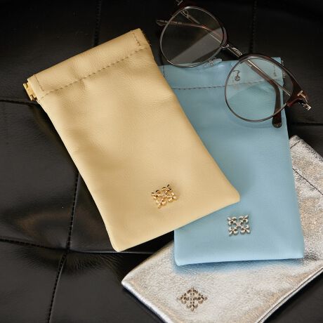 バッグの中でふと目に入る、明るく上品なカラーが印象的なソフトレザー眼鏡ケース。
