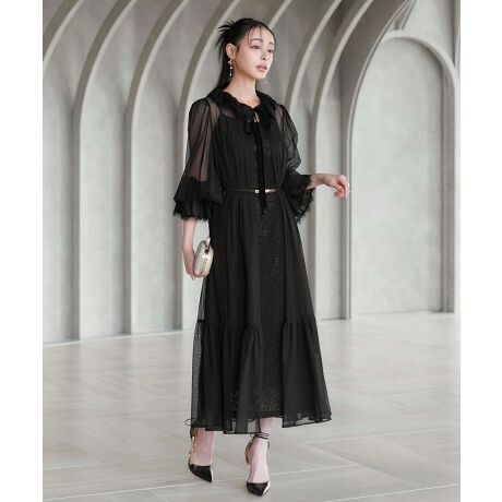 ・シアーチュール×スカラップレースのエレガントなガウンドレス。