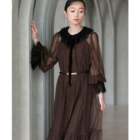 ・シアーチュール×スカラップレースのエレガントなガウンドレス。