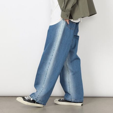 両サイドのブリーチ加工がアクセントになった、デニムラインブリーチパンツです。