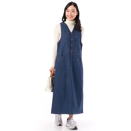 【素材】適度な厚みとストレッチ性抜群のデニム素材を使ったジャンプスカート。【デザイン】デニムジャケットとパンツを解体してリメイクしたかの様なデザインのジャンプスカート。スカート部分はややAラインに広がったシルエットながらデニム素材の持つカジュアルさで甘過ぎないシルエットを作っています。【ブランド情報】FRAPBOIS/フラボア2001年にブランドスタート。「大人げない大人の服」をコンセプトに、大人が着るリラックスしたデイリーウェアを提案するコレクションブランド。レディースとメンズのアイテムをご用意しています。
