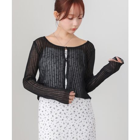 キャミソールやタンクトップにさらっと羽織って、ラメの輝きを主役にしたスタイリングがおすすめ。ハイウエストのデニムやスラックス、ナロースカートともバランスよく合わせられ、ショート丈を活かしたスタイルアップコーデが楽しめます。