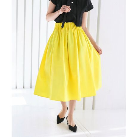 ボリュームたっぷりのフレアシルエットにしっかりとギャザーが入って表情をプラス。