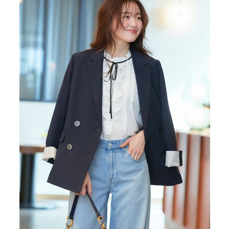 2typeの袖丈から選べる上品な麻ライクで仕立てたピークドラペルのテーラードジャケット