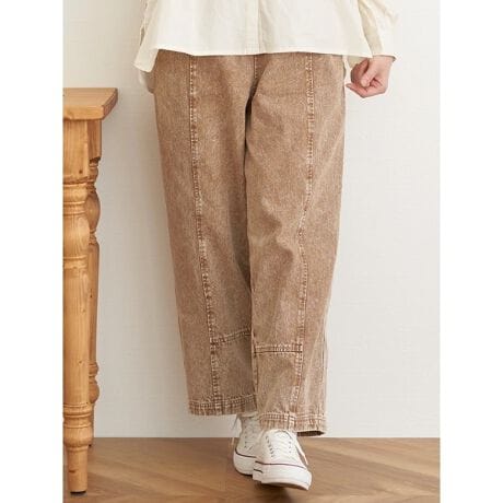 [型番:26410701385]裾に向かってしぼむようなコクーンシルエットが魅力的なパンツ。豊富なバリエーションを揃えたカラーデニムは、それぞれ異なる雰囲気を楽しめます。ウエストゴム仕様がラクな穿き心地を実現。同デザインのジャケットと合わせたセットアップ風の着こなしもおすすめです。Hare no hi/ハレノヒ