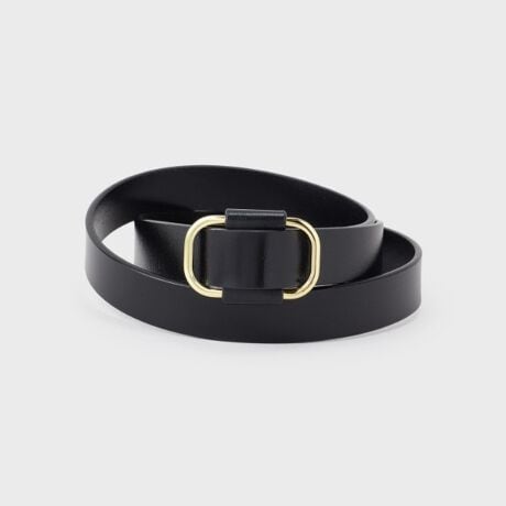 スクエア型の金具にベルトの先を通し、好きな長さで着用していただける仕様です。