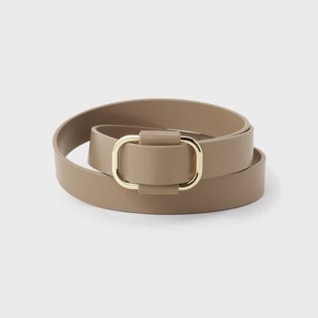 スクエア型の金具にベルトの先を通し、好きな長さで着用していただける仕様です。