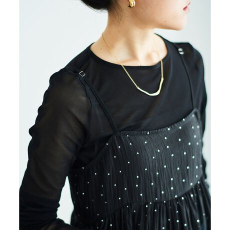 [型番:3060010700]★新色「ラベンダー」が登場!オールシーズン使える大ヒット中のシアーインナーのクルーネックver.です。●ポイント程よい透け感で、大人の抜け感をプラスしたチュール素材のクルーネックプルオーバー。抜け感のある素材がコーディネートのアクセントになってくれます。透け感がトレンド感を高めてくれる優しいフィット感がありながら伸縮性もあり、着心地が良い。シーズンレスで使え、トレンドライクなスタイリングが完成します。