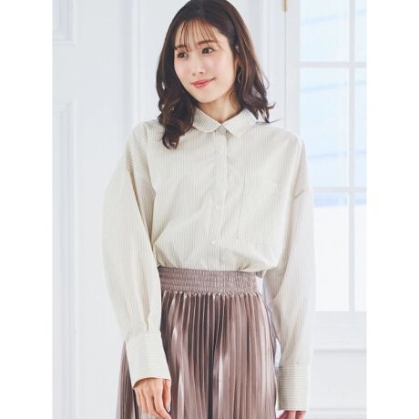 [型番:26550727745]ゆったりとしたシルエットが程よい抜け感を演出するシャツ。袖口にタックを寄せており、さりげない立体感をプラスします。トップスとしてはもちろん、キャミソールとレイヤードしたコーディネートもおすすめ。シンプルなルックスで着まわしやすく、幅広いスタイリングを楽しめます。モデル(B柄/C柄/D柄着用)身長:165cm Mサイズ着用