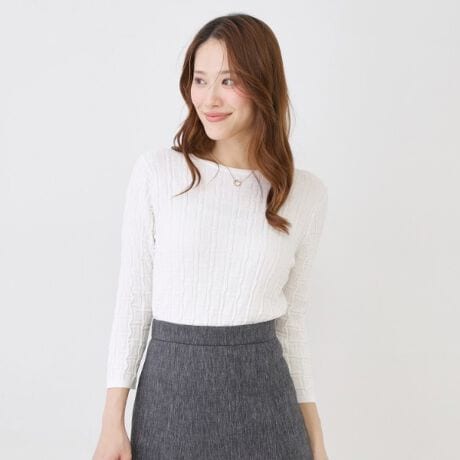 表目と裏目の凹凸柄編が印象的なコンパクトニット。