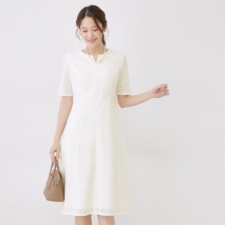 今シーズンの360°ワンピースは、凹凸感のあるタイル調柄のラッセルレース素材を使用しました。