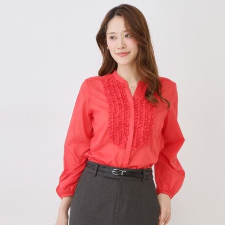 華やかな前フリルが目を惹くシアーローンブラウス。